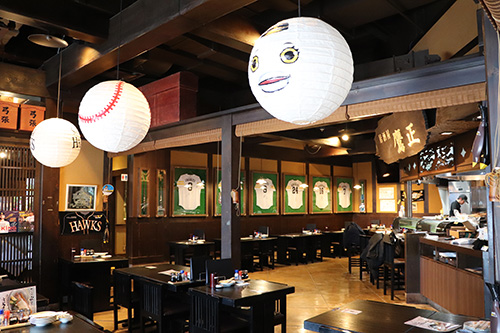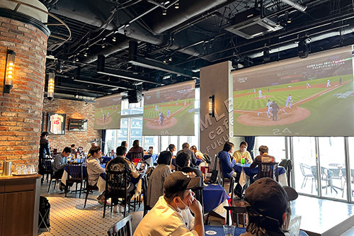 BOSS E・ZO FUKUOKA内The FOODHALL(MLB caféを含む)、とりかわ竹乃屋 鷹正、英国風パブHUBではお食事を楽しみながら、試合中継をご覧いただけます。