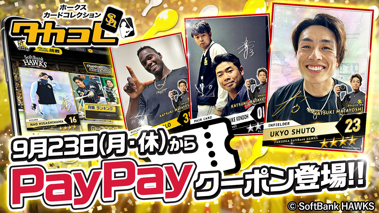 タカコレとは選手のデジタルカードをコレクションするサービスです。ログインやミッション達成で得られるポイントやアイテムの「バルーン」により、カードをゲットでき、ユーザー同士のトレードなども可能です。手に入れたカードを使った活躍予想など様々な遊び方があります。