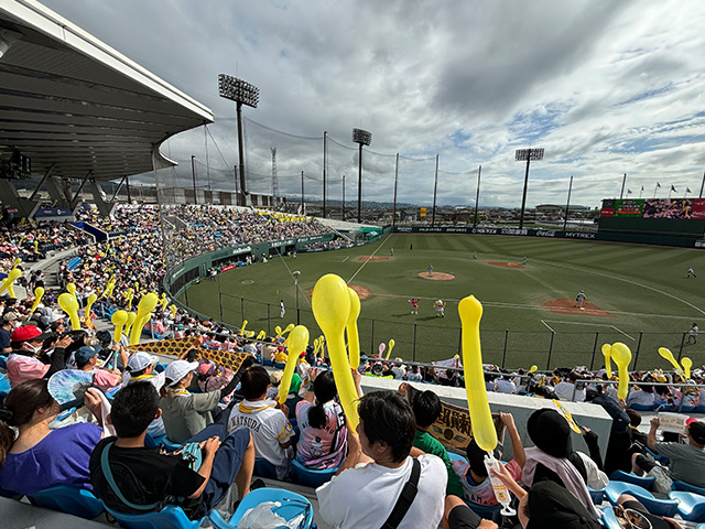 タマホーム スタジアム筑後で開催するウエスタン・リーグ公式戦は、9月22日(日・祝)のくふうハヤテ戦が今シーズン最後の試合となりました。朝から雨予報で心配されましたが、スタンドは満員のお客様で埋め尽くされ、ホークスが13対2で大勝。そして、2軍の優勝マジックは5となりました!(※9月23日試合前時点)