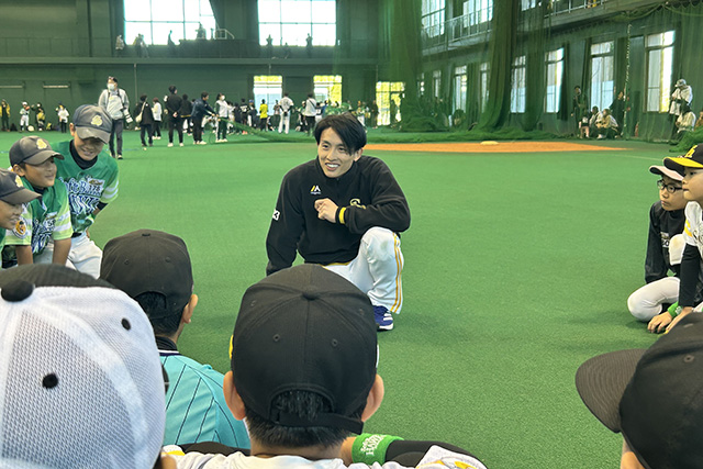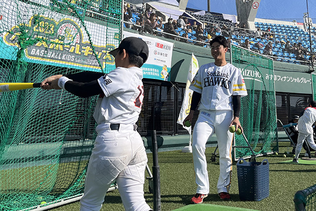 ホークス現役選手が九州(沖縄県含む)・山口の各県計11会場を訪れ、多くの小学生の参加者と野球やトークショーなどを通じて交流します。