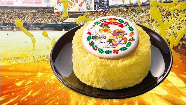 福岡ソフトバンクホークスのイメージカラーである“イエロー”を基調としたケーキにクリスマスを楽しむハリーホークとハニーホークがデザインされたイオン九州限定のチーズケーキです。