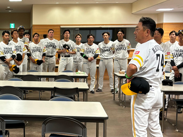 試合後に松山監督は選手たちを集め、「それぞれ自分の課題がわかった試合になったと思う。明後日(フェニックス・リーグ開幕)からまた来年に向けての勝負がスタートする。気持ちをしっかりと切り替えて、このからも日々大事に過ごしていきましょう」と選手たちに訓示しました。試合に敗れたものの、選手たちは引き締まった表情で前を向いていたのが印象的でした。