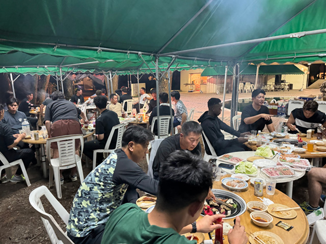 この日の夜はチーム全員が集まりバーベキューを開催!選手たちは祝杯とならずも戦いを終えた開放的な雰囲気で盛り上がり、これからの自身との戦いに向けて英気を養いました。最後の締めに吉本亮2軍打撃コーチが「今季もみんなの頑張りでウエスタン・リーグでは優勝できました。1軍でやっていくにはどうするかということを考え、また新たな目標をもって頑張っていきましょう」と挨拶しお開きとなりました。
