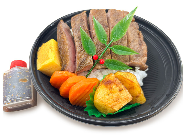 | 商品説明 | 和牛のオリンピック『全国和牛能力共進会』において内閣総理大臣賞4連覇の実績を誇る、宮崎牛の中でも厳選したA5等級 を使用したステーキ丼! |