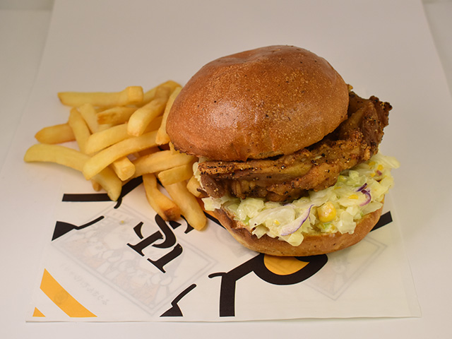 | 商品説明 | はかた一番どりの大モモ肉をガーリック風味サクッと焼き上げコールスローと一緒にバーガーにしました! |