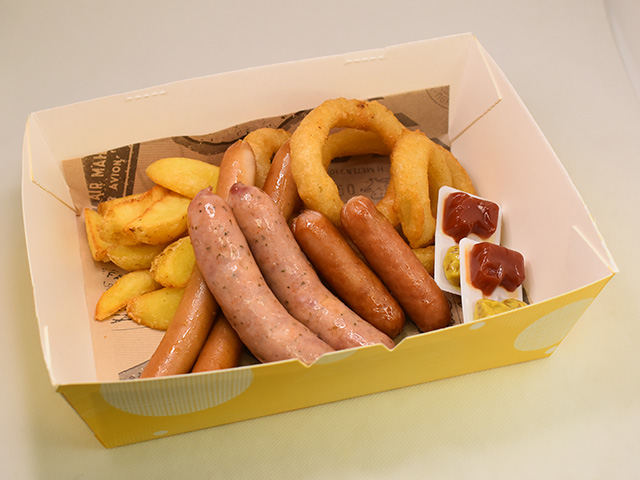 | 商品説明 | 3種類のウインナーソーセージ&ポテトフライ&オニオンリングを盛り合わせたBOX! |