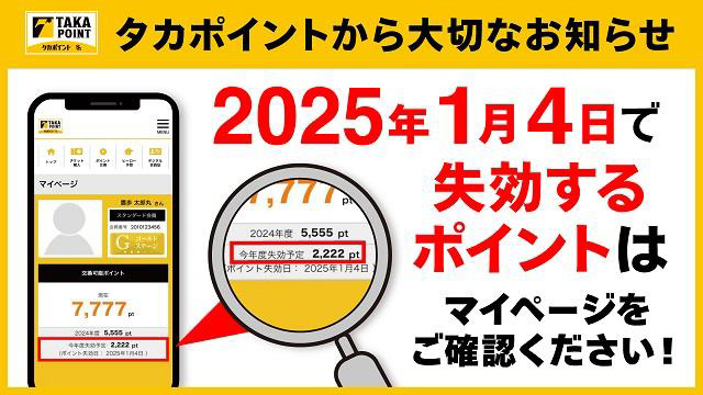 2024年1月4日までに獲得したポイントは、2025年1月4日(土)に失効します。