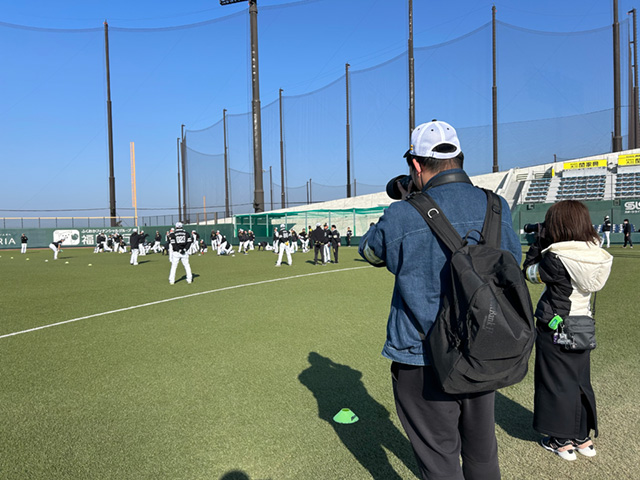 グラウンドで練習する若鷹選手と同じ目線で臨場感ある見学ができます!
