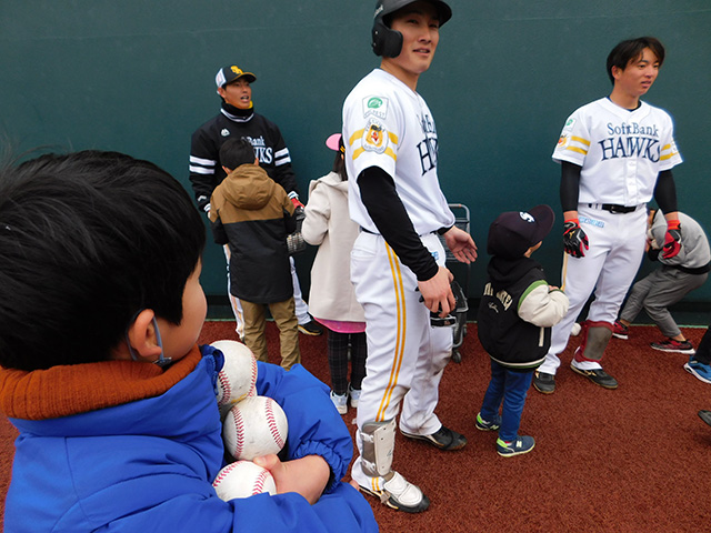 練習後のグラウンドで、選手やコーチと一緒にボール回収のお手伝いしてくれる方を募集します!体験終了後には、選手のバットや用具にふれたり、記念撮影をすることができます☆