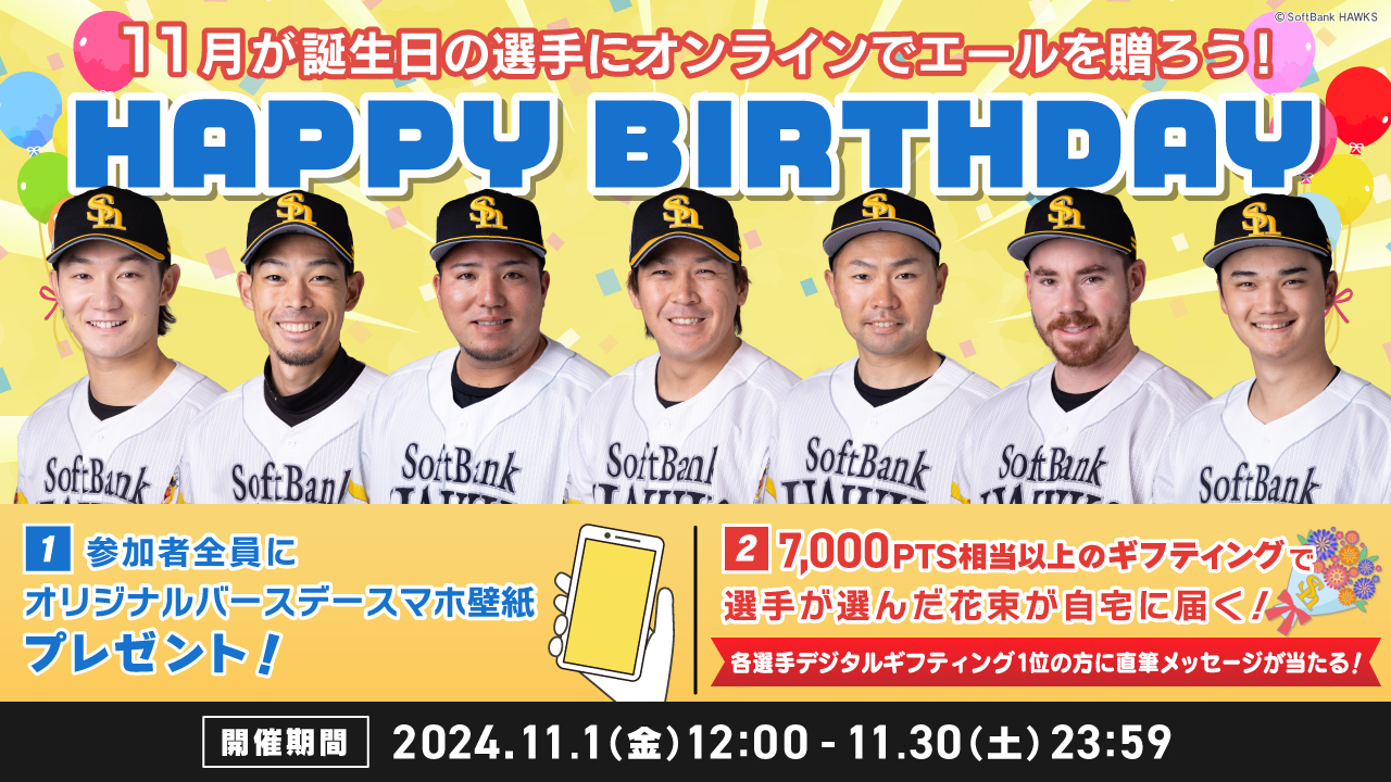 11月1日(金)~30日(土)の期間、11月生まれの選手へエールを送るギフティングイベントを開催します。