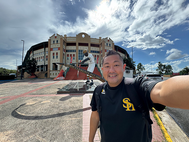 みなさま、初めまして。ホークス入団3年目のスペイン語通訳、福岡吉央(よしてる)です。普段は筑後で育成外国人選手たちのサポートをしています。そして今回、先乗りしていた大竹風雅投手、沖浦良一トレーナーに続き、松本晴投手とともに11月5日にプエルトリコ入りしました。私個人にとっては、ホークス入りする前の2018年のコロンビア、2019年のメキシコに続き、3カ国目となるウインターリーグでの勤務です。コロナ禍だった2020年半ばに帰国して以来、久しぶりのラテンアメリカということで、懐かしさを感じながら過ごしています。