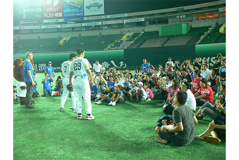 グラウンドで選手になりきって野球体験ができるなど、キッズ向けファンサービスを中心とした参加型イベントを実施!夏休みはご家族みんなでヤフードームに遊びに行こう!