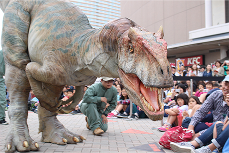 大迫力の恐竜ライブショーや「化石発掘体験」、試合を盛り上げる「恐竜ビジョン」など、楽しく学べるイベントです。
