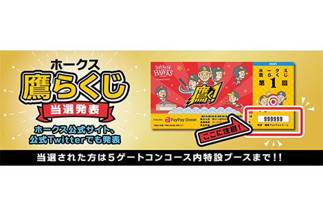 サイン入りグッズや招待券などが抽選で当たる「鷹ら(たから)くじ」が付いたステッカーを配布!