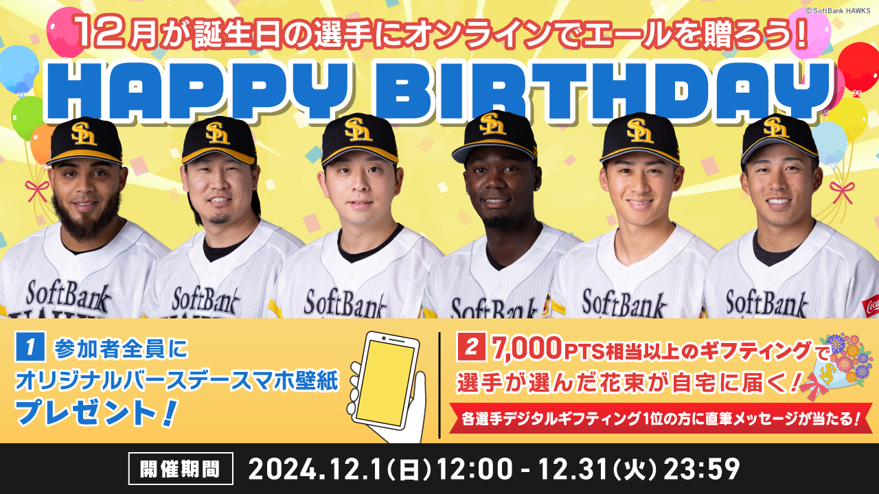 12月1日(日)~31日(火)の期間、12月生まれの選手へエールを送るギフティングイベントを開催します。