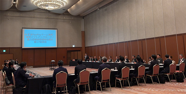 福岡ソフトバンクホークス株式会社は、11月14日(木)に暴力団等の反社会的勢力を排除し、みずほPayPayドーム福岡、BOSS E・ZO FUKUOKA、ヒルトン福岡シーホーク、およびMARK IS福岡ももちの環境の維持と、プロ野球の健全性確保を目的として活動する「みずほPayPayドーム福岡・福岡ソフトバンクホークス暴力団等排除連絡協議会」の第17回総会をヒルトン福岡シーホークで開催しました。