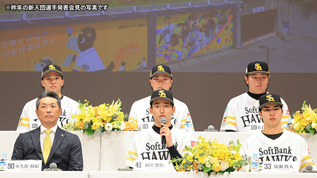 2025年度に入団する新人選手たちの発表会見の模様を生配信!今年ドラフトで指名された支配下契約6選手と育成契約13選手がユニフォーム姿で一同に集結します。全員が揃って登場するのは今回が初めて!この機会に新入団選手たちの顔と名前を覚えていただけると嬉しいです♪