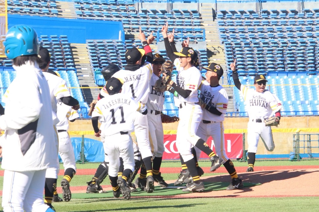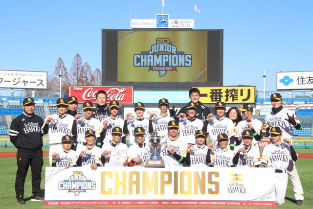 年の瀬の恒例行事となっている「NPB12球団ジュニアトーナメント KONAMI CUP 2024~第20回記念大会~」は12月29日、明治神宮野球場で大会4日目が行われました。福岡ソフトバンクホークスジュニアは北海道日本ハムファイターズジュニアに5-1で勝利し、2009年以来、15年ぶりの優勝を手にしました。就任6年目となった帆足和幸監督にとっては初の栄冠に。20回目の記念大会を制して、ホークスジュニアが歴史に名を残しました。