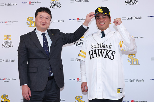 起用法について同席した三笠杉彦取締役GMは「最終的には小久保監督、倉野コーチ含め状況を見極めながら決めていく」と話した上で「現状は先発もあれば中継ぎもあると考えている」と説明しました。