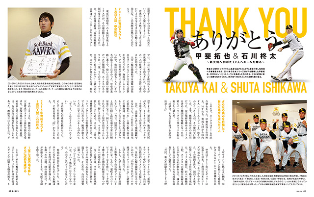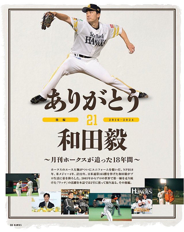 また、和田毅投手の引退特集を前号に続き、プロ野球生活の後半を振り返ります。さらに、FA権を行使してホークスを離れることとなった石川柊太投手と甲斐拓也選手のこれまでの功績を記事にて振り返ります。