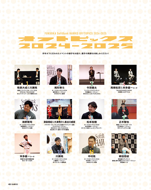 2024年オフに各地で行われたトークショーなどイベントの様子をお届け。選手の素顔がたくさん見られます!