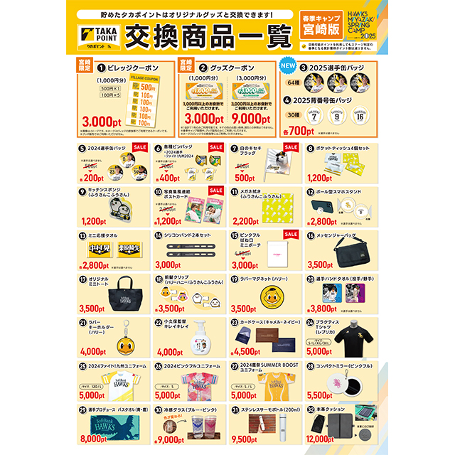 宮崎キャンプでもタカポイント交換を行います。ぜひお立ち寄りください!