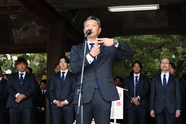 1月30日(木)、今季のリーグ優勝と日本一への願いを込めて、福岡市東区の筥崎宮にて必勝祈願を行いました。