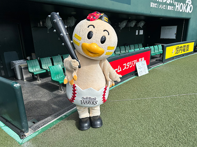こんにちは。宮崎と時を同じくして、筑後スプリングトレーニング2025も元気にスタートしています。今年も筑後の様子を発信していきますよ!ひな丸も選手たちを笑顔で見守り、時には一緒にトレーニング(?)を頑張っていました。