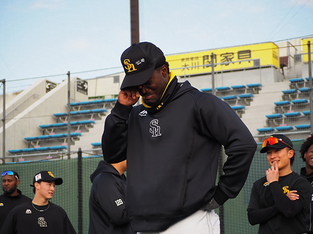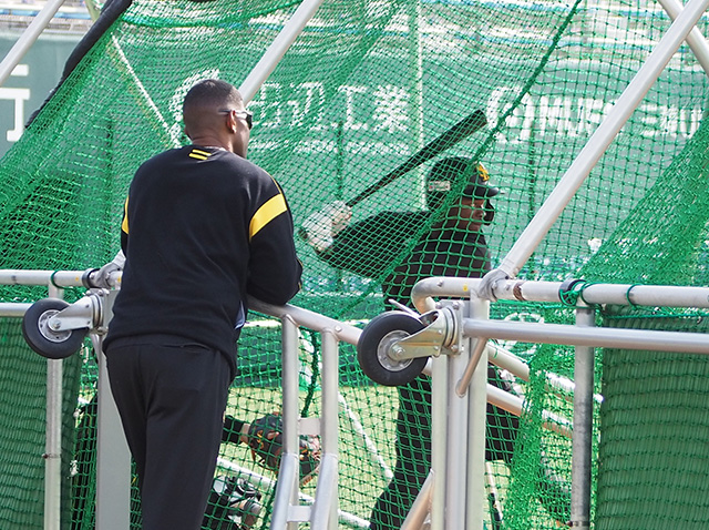 さて、今春キャンプ中、主に外国人選手のサポートとして、ホークスOBであるリック・バンデンハークさんとフリオ・ズレータさんが臨時コーチとして来日しています。第1クールは共に筑後で選手たちとコミュニケーションを取っていました。
