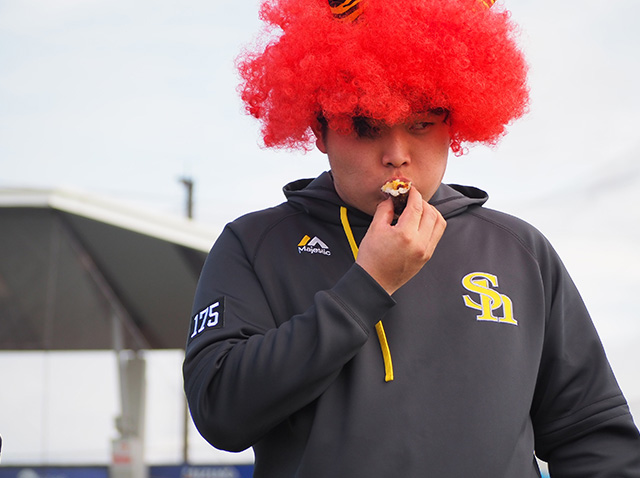 佐倉選手は……そういえば、去年もこのイベントに登場しましたよね?その記憶はチーム内にもあったようで、「あれ?佐倉また?」「去年も食べてなかった?」などと指摘を受けていました。2年連続2回目の出場に佐倉選手もニンマリ(笑)。食いしん坊キャラは誰にも譲りません!