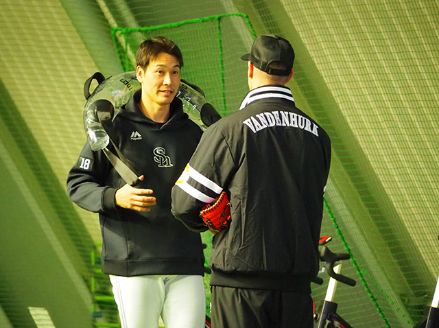 ズレータさんは、来日する前から若鷹たちの動画をチェックしていて、伝えたい思いをたくさん持って来てくれたようです。第1クールから早速、打撃面のアドバイスやメンタル面を選手たちに伝えていました。彼らを招聘した国際部スタッフは「まだ2日目だけど、本当に彼らを呼んで良かった」と2人の熱量と若鷹たちの受ける影響の大きさを感じていました。