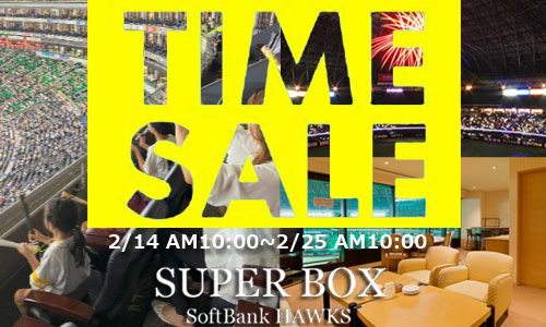 3月にみずほPayPayドームで開催されるホークス主催オープン戦と3月23日(日)に開催されるSoftBank HAWKS 20th ANNIVERSARY SPECIAL MATCHのSUPER BOX(スーパーボックス)のタイムセールを、2月14日(金)から開始します!