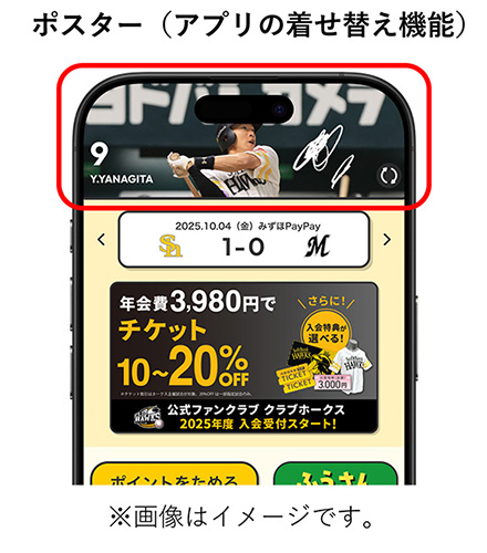 - 本キャンペーンの内容は変更される場合があります。福岡ソフトバンクホークス株式会社(以下「当社」という)は、当社が必要と判断した場合、当社公式サイトまたは「ためタカ!」アプリなどへ掲出することにより、本キャンペーンの内容および本応募に関する条件を応募者の個別の同意を得ることなく変更ができるものとします。この場合、当該変更後の内容は、当該掲出時点より適用されるものとします。