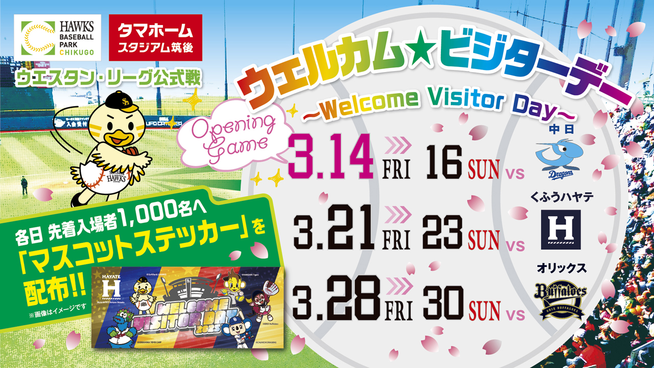 ビジターファンも必見!入場者へのステッカー配布に、ビジター球団所属選手によるサイン会や練習見学とイベント大集結の「ウェルカム☆ビジターデー」を、ウエスタン・リーグ所属の5球団と開催します!