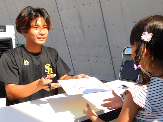 タマスタ筑後でもビジターチームの選手によるサイン会を、各対戦カード1・2日目の試合終了後に実施!