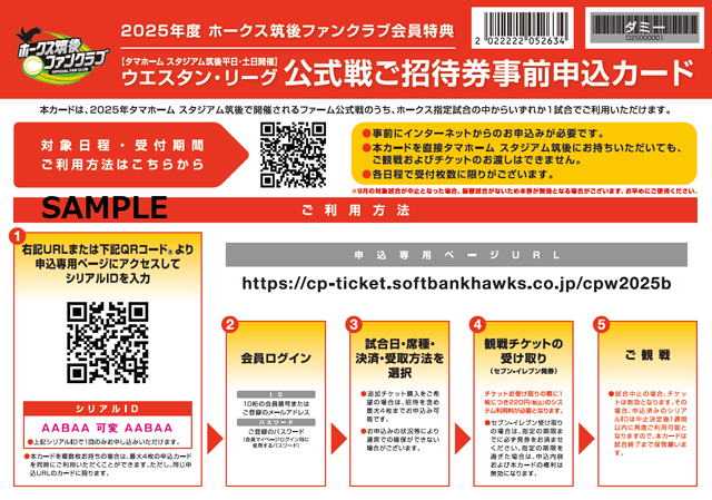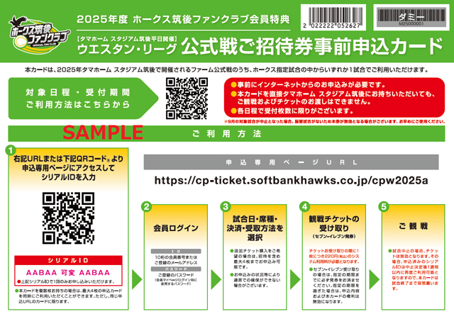 2025年度のホークス筑後ファンクラブ会員(対象者)の皆さまへ、チケット特典の使用方法についてご案内いたします。
