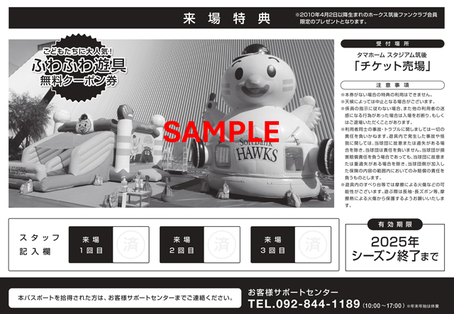 - 不測の事態により、発券後に特典の提供をとりやめる場合がございます。その際は、対象のお客様にメールとホークス公式サイトにてご案内いたします。