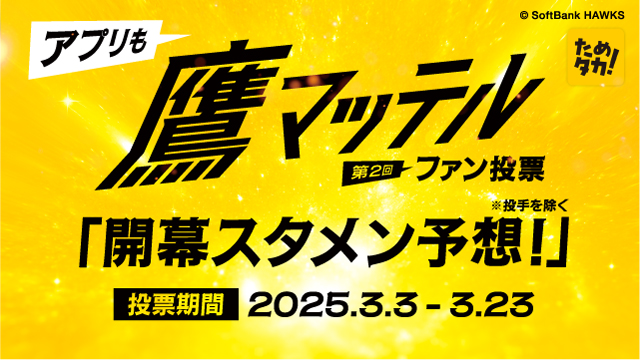 ホークス公式アプリ「ためタカ!」で、3月3日(月)から開幕スタメン予想がスタート!