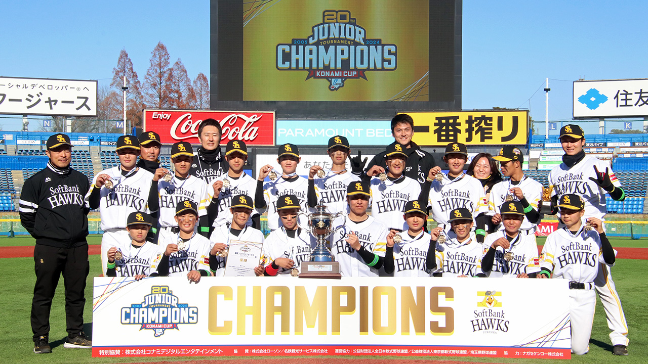 なお、昨年まで6期連続でジュニアチームの監督を務めた帆足和幸氏は、2024年度大会をもって退任しました。今後もホークスジュニアアカデミーのコーチとして、各地のスクールやイベントで野球振興業務に携わります。