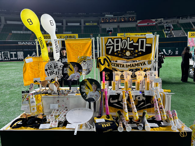 推し選手と一緒に写真が撮れるフォトプロップスや、表は推し選手の写真で、裏がホワイトボードになったジャンボうちわなど、実用性も兼ねたグッズも!
