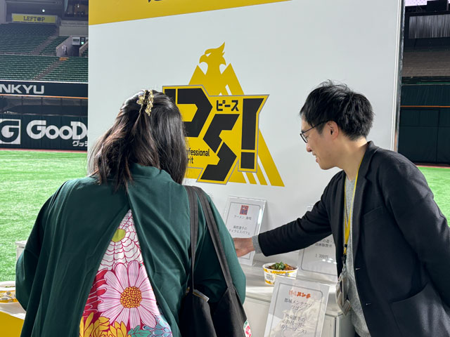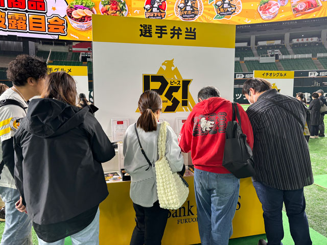 グルメエリアには、人気の選手グルメやお弁当からソフトバンクホークス誕生20周年記念グルメなど、ホークスらしさ満点のフードやスイーツがズラリを並びました。見た目だけではなく、味もしっかり知っていただきたいと思い、来場者にはお好きな商品まるごと1点を堪能いただきました。
