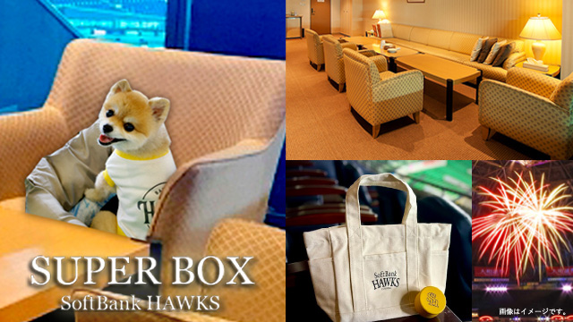 みずほPayPayドームのスーパーボックスで愛犬と食事をしながらゆったり野球観戦が楽しめる「いざゆけ!ワンワンルーム」観戦プランを4月4日(金)10:00から室数限定で販売します。さらに、特典としてお散歩用オリジナルトートバッグ&ホークスオリジナルトリーツ缶もプレゼント!