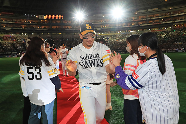 試合終了後に、グラウンドで当日のヒーローとのハイタッチにご参加いただけます。