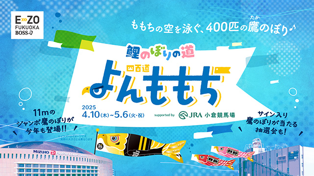 4月10日(木曜)から5月6日(休日・火曜)にかけて、みずほPayPayドーム福岡周辺にて実施される鯉のぼりの道「よんももち(四百道)」に冠協賛いたします。