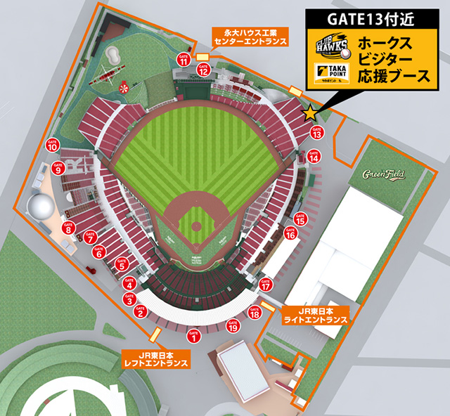 楽天モバイルパーク宮城 GATE13付近 ホークスビジター応援ブース
