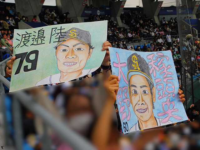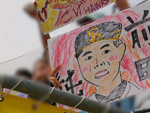 対象選手の似顔絵を描いて、イニング間にカメラに向かってアピールしよう!アピールが成功した方には、後日、その似顔絵に該当選手の「直筆サイン」を添えてお返しいたします!