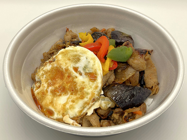 甘辛ダレが野菜とお肉によく絡み、食欲をそそる味つけに。 満足感たっぷりの丼ぶりです。 |