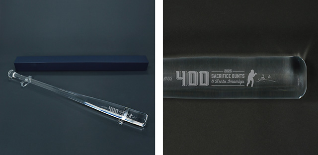 長さ約85cmのクリアバット本体に記念デザインが刻印されている、他に類を見ない記念アイテムです!