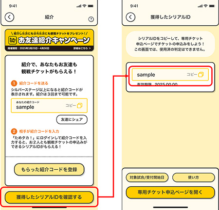 - (1)お友達が「紹介コード」を入力すると発行される「シリアルID」を確認する