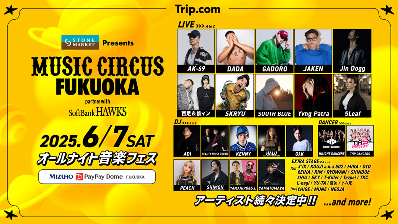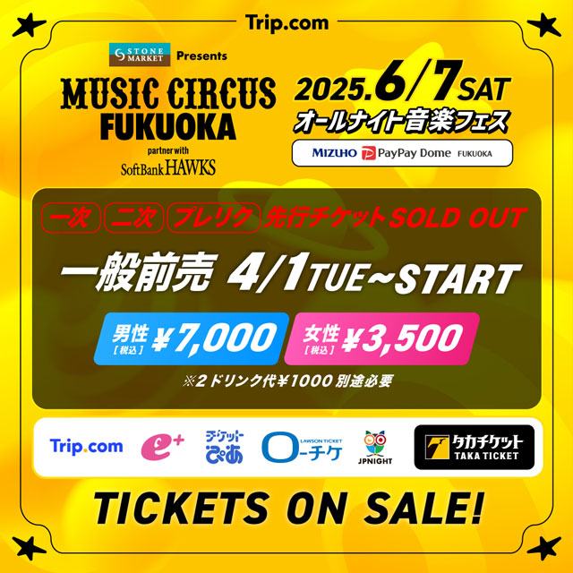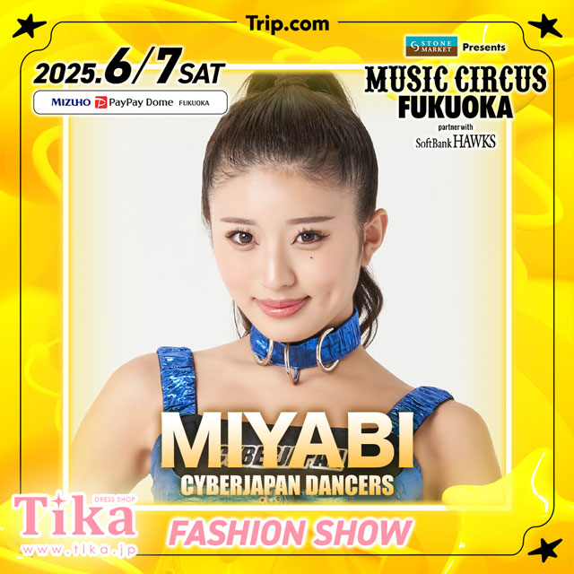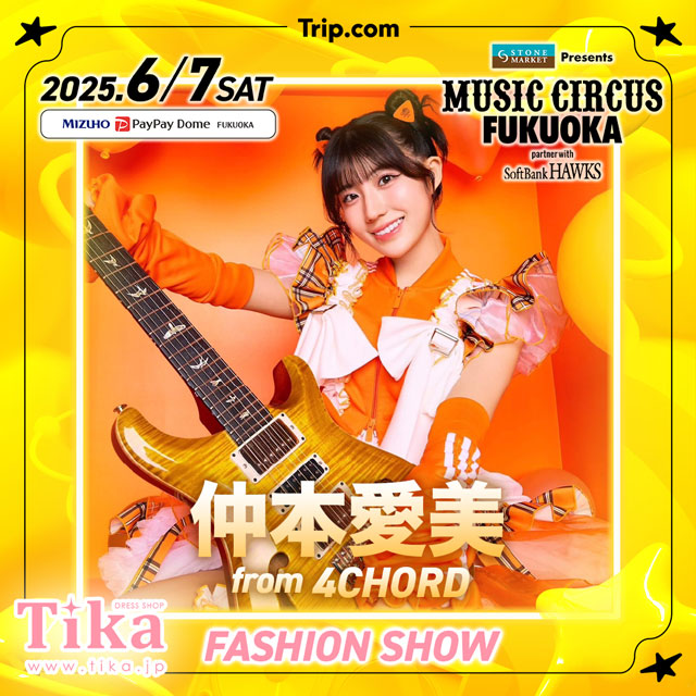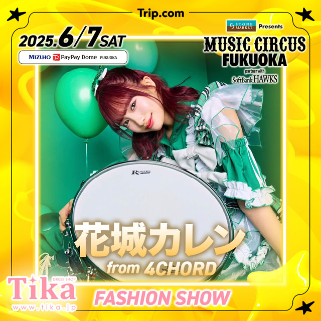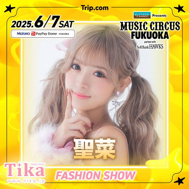 音楽を中心に、ファッション、グルメ、スポーツなど多彩なコンテンツが楽しめるオールナイト音楽フェスティバル「STONE MARKET Presents MUSIC CIRCUS FUKUOKA partner with SoftBank HAWKS」にてファッションショー「Tikaステージ」を開催します。アレン、戦慄かなのをはじめ、モデルたちが続々登場!華やかなステージをお楽しみください!